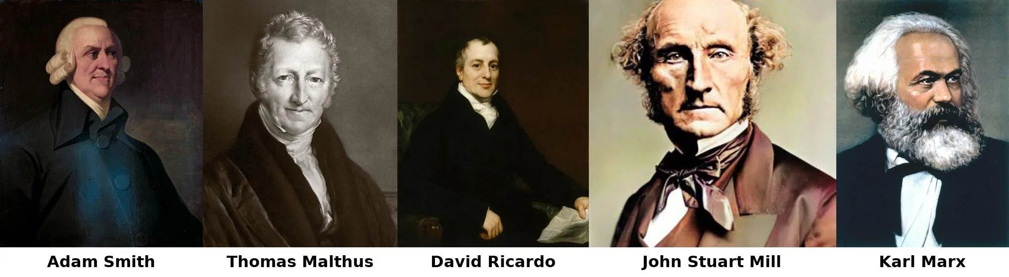 The Classical Political Economists (1776–1867) grounded their economic thinking in biophysical foundations (land, labor, and productive capacity) and moral philosophy (distribution, justice, and welfare). Their frameworks reflected limits posed by land scarcity, population pressure, and the ethical dimensions of economic organization.